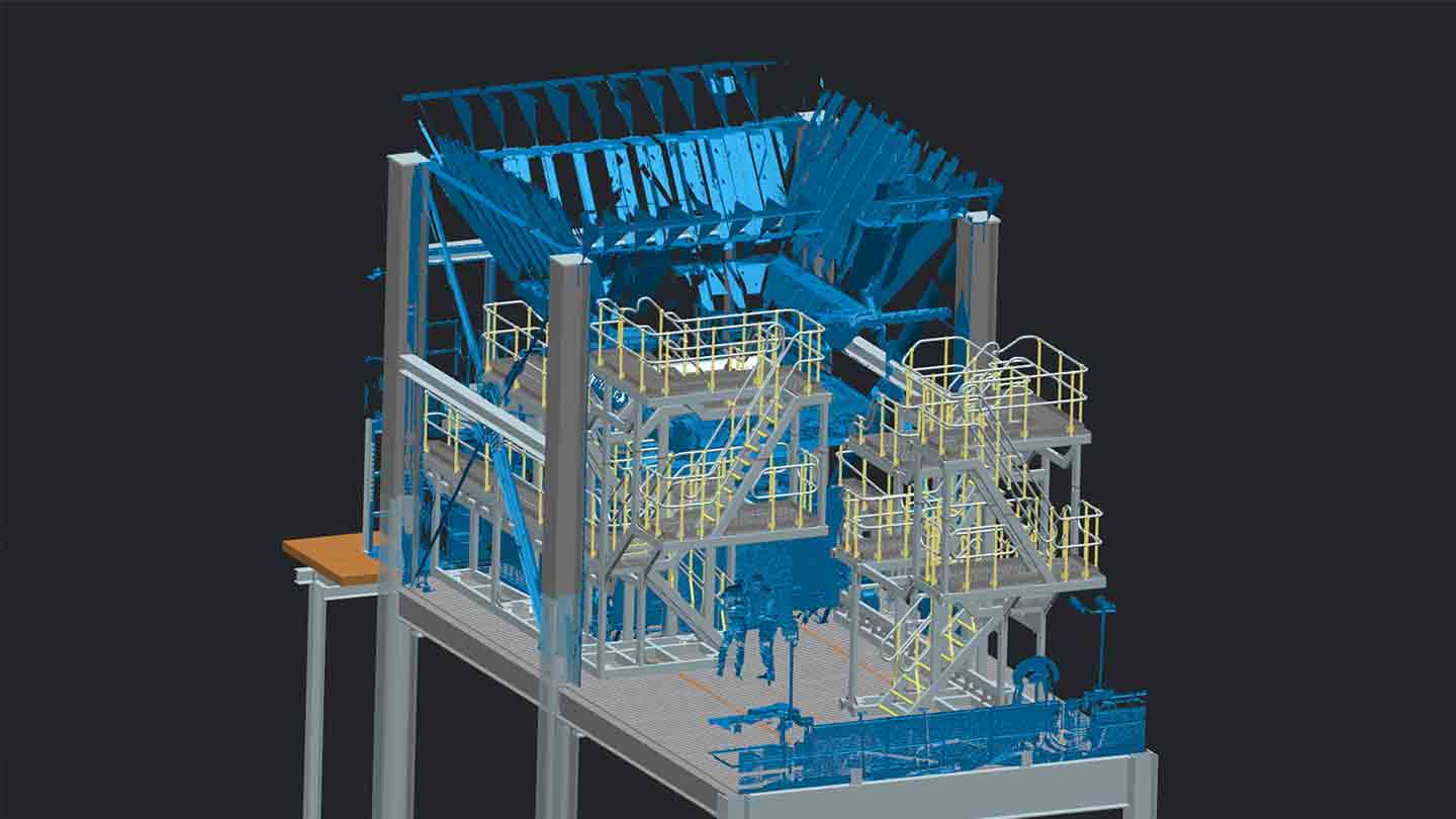 Using the captured data points we align scan data taken from multiple positions to create a precise reference of an existing structure. This can significantly lower future operating expenses and reduce the risk of a part not fitting or clashing during fabrication or installation.